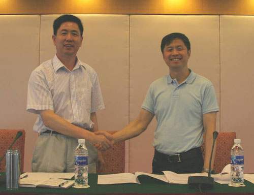 西泵公司總經(jīng)理孫耀忠和江利公司總經(jīng)理唐德強(qiáng)簽署股權(quán)轉(zhuǎn)讓協(xié)議